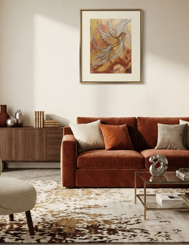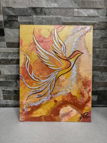 Attraverso pennellate fluide e bagliori metallici, questo quadro rappresenta il battito vitale della metamorfosi. È un invito a riconoscere la bellezza nel fluire incessante delle cose e a trovare, nel cuore del mutamento, la forza di rinascere sempre, più luminosi di prima.